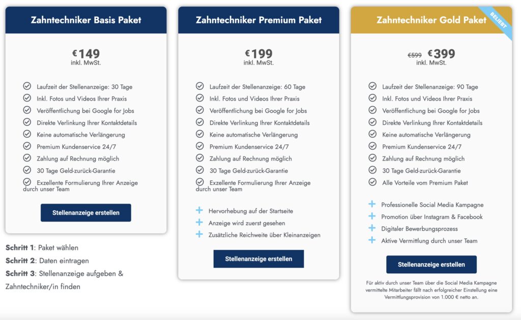 Schritt 3: Stellenanzeige aufgeben & Zahntechniker/in finden