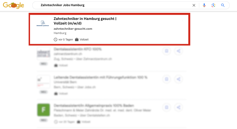 Alle Zahntechniker Stellenangebote werden automatisch auch in der Google Jobsuche ausgespielt.